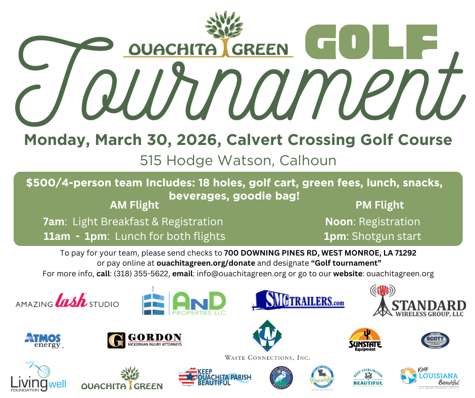 Calvert Crossing Golf Club 515 Hodge Watson Rd, Calhoun, LA, United StatesSave the image below. Download. Print. Complete. Email to info@ouachitagreen.org. Pay online at ouachitagreen.org/donate and designate "Golf Tournament".