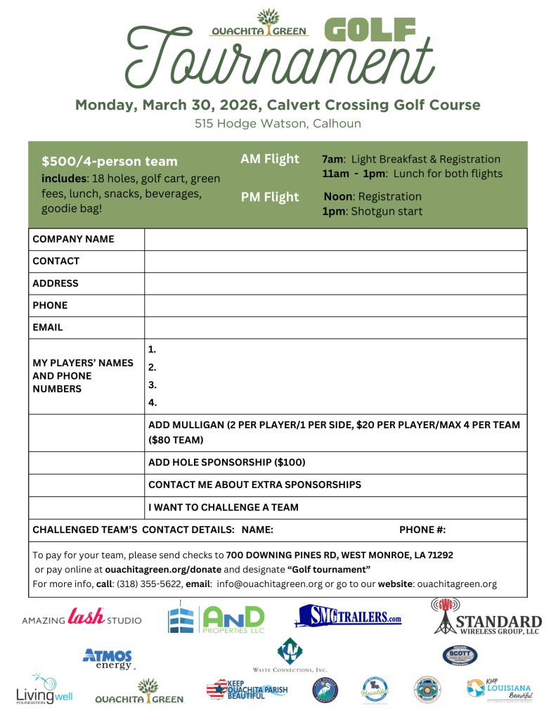 Pay online at ouachitagreen.org/donate and designate “Golf Tournament”.