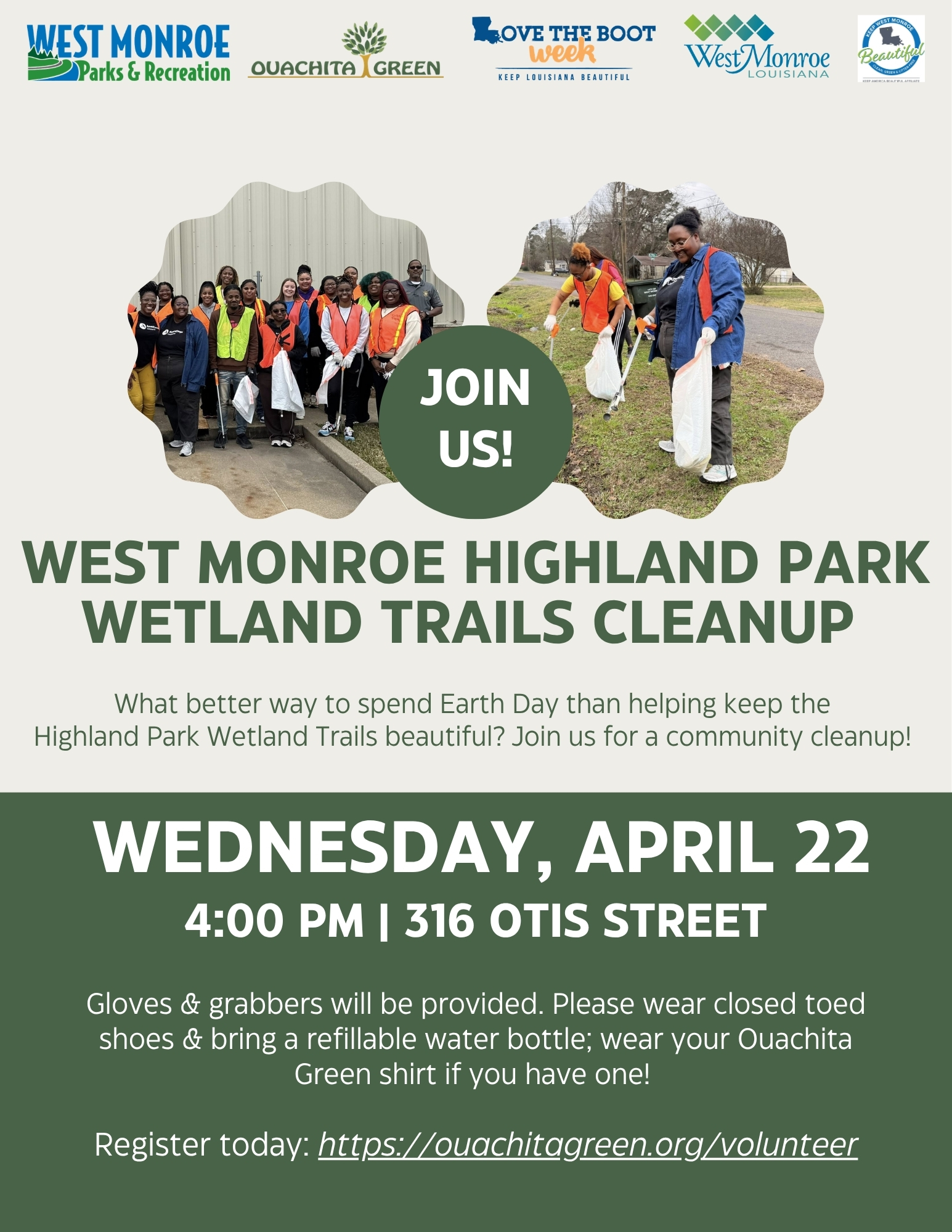 Keep Sterlington Beautiful’s Cleanup Sterlington: Love the Boot Week 2026