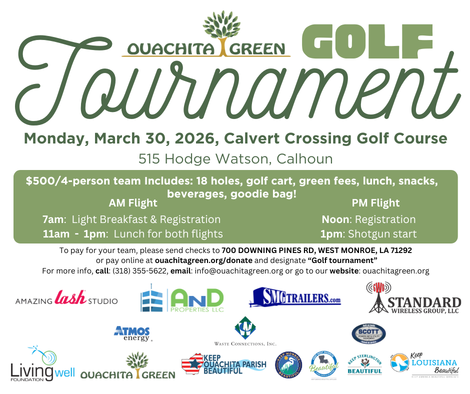 Calvert Crossing Golf Club 515 Hodge Watson Rd, Calhoun, LA, United StatesSave the image below. Download. Print. Complete. Email to info@ouachitagreen.org. Pay online at ouachitagreen.org/donate and designate "Golf Tournament".