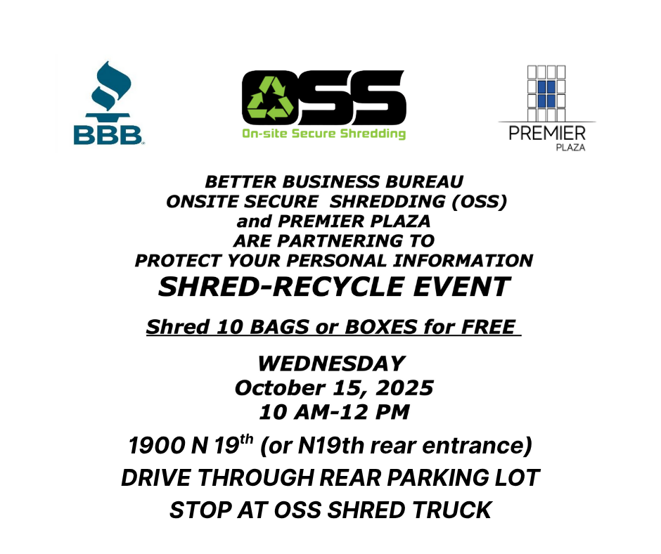 Better Business Bureau, Onsite Secure Shredding and Premier Plaza’s Shred-Recycle Event Better Business Bureau, Onsite Secure Shredding and Premier Plaza’s Shred-Recycle Event Read More